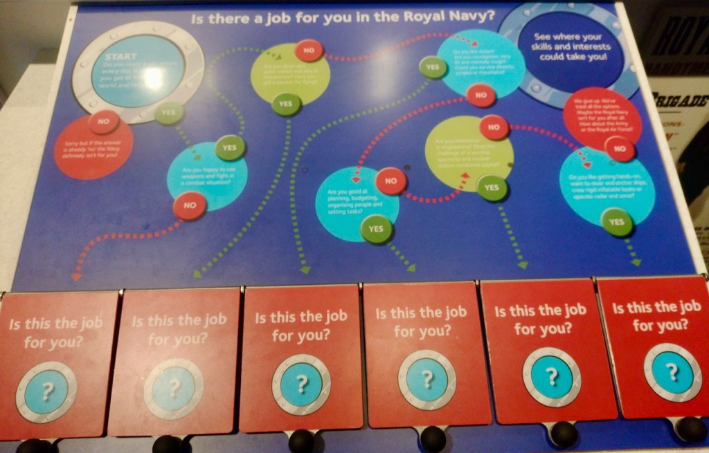 Ganz nebenbei hat das Museum auf diese Art auch die unbedarfste Besucherin in die verschiedenen Aufgabengebiete innerhalb der Royal Navy eingeführt und mir erklärt, was frau dafür benötigt. Jetzt bin ich eingestimmt auf die restliche Ausstellung.